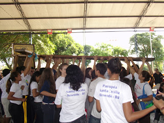 Participação das alunas do colégio na passagem da Cruz Peregrina e Ícone de Nossa Senhora - símbolos da JMJ/2013.